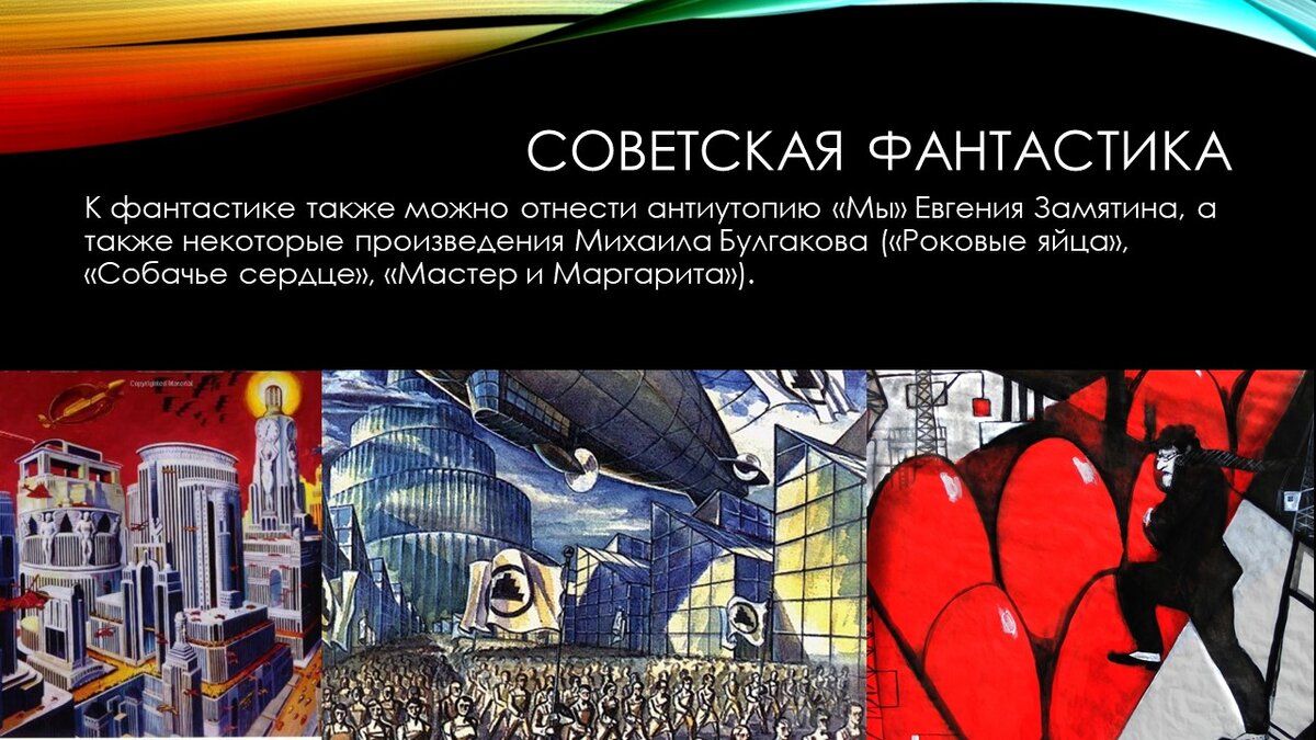 Основной пафос большинства произведений тех лет сводился к ожиданию неминуемой и скорой победы мировой социальной революции и пришествия «царства свободы». Ожидания не оправдались, романтика революционных лет поблекла, футуризм попал в немилость, а в фантастике возобладала доктрина, так называемого, ближнего прицела.