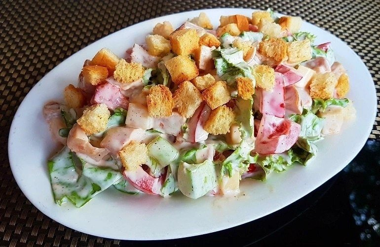 Салат готовить очень просто, возьмите его на заметку, как салат за 15 минут, очень удобный вариант для нежданных гостей или легкого быстрого обеда. Заправлять салат не обязательно майонезом, можно использовать сметану или любимую свою заправку.
