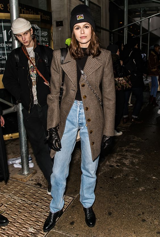 Прямые джинсы – в сезоне 2020 просто необходимый предмет гардероба. Носить их можно с чем угодно, но сегодня мы хотим показать вам мини-подборочку. Мы подсмотрели за одной из самых востребованных топ-моделей современности – Кайей Гербер. Если кто не знает – она дочка Синди Кроуфорд. Она любит джинсы как мы и даже больше. Поэтому смотрим какие луки она подобрала. Современная классика Клетчатый жакет, белая рубашка и джинсы – классическое сочетание. Чтобы оно смотрелось не так грустно Кайя надела кроссовки, выпустила широкие манжеты рубашки наружу и сделала яркий макияж. Если подобный жакет в клетку кажется вам «бабушкиным», замените его на модель пастельного оттенка. Например, цвета фуксии. А еще добавьте парочку аксессуаров – браслет, брошь или кулон на длинной цепочке. Бежевое пальто и джинсы Пальто базового цвета и голубые джинсы дополняем ярким свитером с принтом. Джинсы берем с завышенной линией талии. Свитер должен доходить до этой самой линии, закрывая шлевки для ремня. Таким