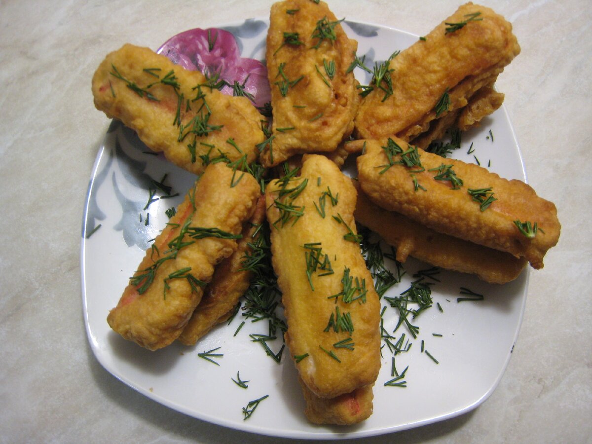Крабовые палочки в кляре - интересная и быстрая закуска. Просто и вкусно. Пошаговый рецепт с фото.