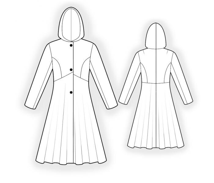 посмотреть модель на сайте 4497 ПАЛЬТО С ЗАВЫШЕННОЙ ТАЛИЕЙ РЕКОМЕНДАЦИИ ПО ВЫБОРУ ТКАНИ: хорошо драпирующаяся пальтовая ткань из натуральных или смесовых волокон. А ТАКЖЕ ВАМ НЕОБХОДИМО: клеевая прокладка; подкладка; 3 пуговицы; подплечники; подокатники. ЕСЛИ НА ЛЕКАЛАХ ДВОЙНОЙ КОНТУР, ТО ЛЕКАЛА ДАНЫ С ПРИПУСКАМИ НА ШВЫ, ЕСЛИ КОНТУР ОДИНАРНЫЙ, ТО ЛЕКАЛА ДАНЫ БЕЗ ПРИПУСКОВ НА ШВЫ. ПРИПУСКИ НА ШВЫ: все швы 1 см. Припуск на подгибку низа пальто и низа рукава - 3.0 см. ВНИМАНИЕ! ПРЕЖДЕ ВСЕГО, РАСПЕЧАТАЙТЕ БУМАЖНЫЕ ВЫКРОЙКИ И РАЗЛОЖИТЕ ИХ НА ШИРИНУ ТКАНИ (ширина ткани может быть от 90 см до 150 см) ДЛЯ ТОГО, ЧТОБЫ ВЫЯСНИТЬ, СКОЛЬКО МАТЕРИАЛА ВАМ ПОТРЕБУЕТСЯ (не забудьте учесть парные и симметричные детали). ПРИ СТАЧИВАНИИ ДЕТАЛЕЙ ОБРАЩАЙТЕ ВНИМАНИЕ НА НАДСЕЧКИ - ОНИ ДОЛЖНЫ СОВПАДАТЬ! РАСКРОЙ: Из основной ткани: 1. Центральная часть спинки – 2 детали 2. Боковая часть спинки – 2 детали 3. Боковая часть полочки – 2 детали 4. Центральная часть полочки – 2 детали 5. Нижняя часть спинки –