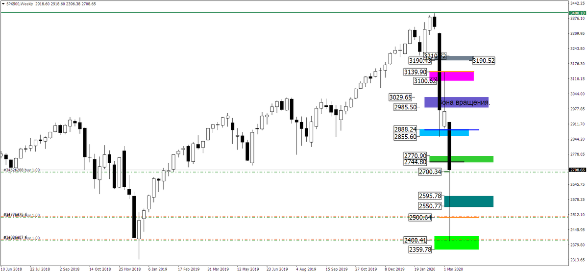 На завершении недели, в рамках своего торгового плана купил S&P500 от ключевой зоны поддержки 2400 пунктов. Дальнейшее движение будет остановлено зоной сопротивления 2880-2930, подробности движения выложу во вторник.