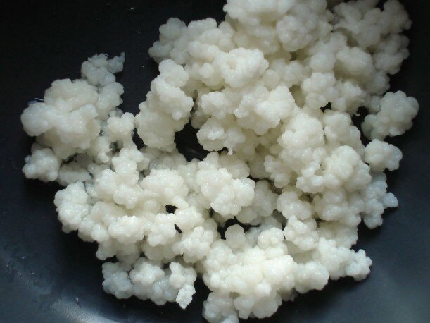 Прежде чем приготовить кефир, подготовьте маточную, а затем производственную закваски. Молоко вместе к кефирными грибка и вылить на стерильной сито и дать ему стечь. Это молоко в котором грибки находились в течении суток, называется маточной кефирной заквас кой и употребляется для приготовления производственной, или рабочей, кефирной закваски. Кефирные грибки, оставшиеся на поверхности сита, надо промыть тонкой струей холодной кипячёной воды, сложить в стерильную баночку и залить пастеризованным молоком, охлажденным до 24°. На 10 г кефирных грибов надо взять 100 грамм молока. Баночку с кефирными грибками закрыть четырьмя слоями стерильной марли и оставить на сутки при 16-18°. В последующие 6 дней ежедневных с кефирных грибов сливать маточную кефирную закваска, кефирные грибки складывать в стерильную баночку и обрабатывать, как описано выше. Кефирные грибки промывать холодной кипячёной водой только один раз в небелю.