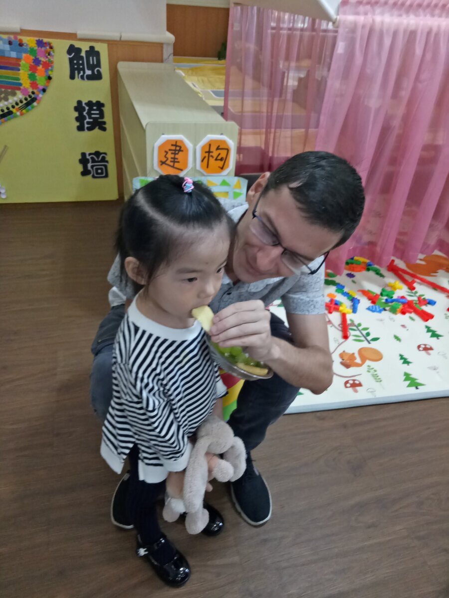 9 сентября 2019 года началась моя работа в детском саду города Чэнду, которая довольно сильно отличалась от предыдущей. Уроков у меня всего 4 (вообще сперва договаривались на два, но второй учитель ушёл, так что я сейчас за двоих), а остальное время я помогаю в группах и играю с детишками. Вот этот процесс игры и помощи попал в кадр. Ох они и балбесы эти самые мелкие, хоть и милота, ничего не могут, только орут, а если не орут, то разбегаются в разные стороны. Особенно сложен процесс кормления с утра. С ложечки впихивать приходится, а они топырятся и орут.