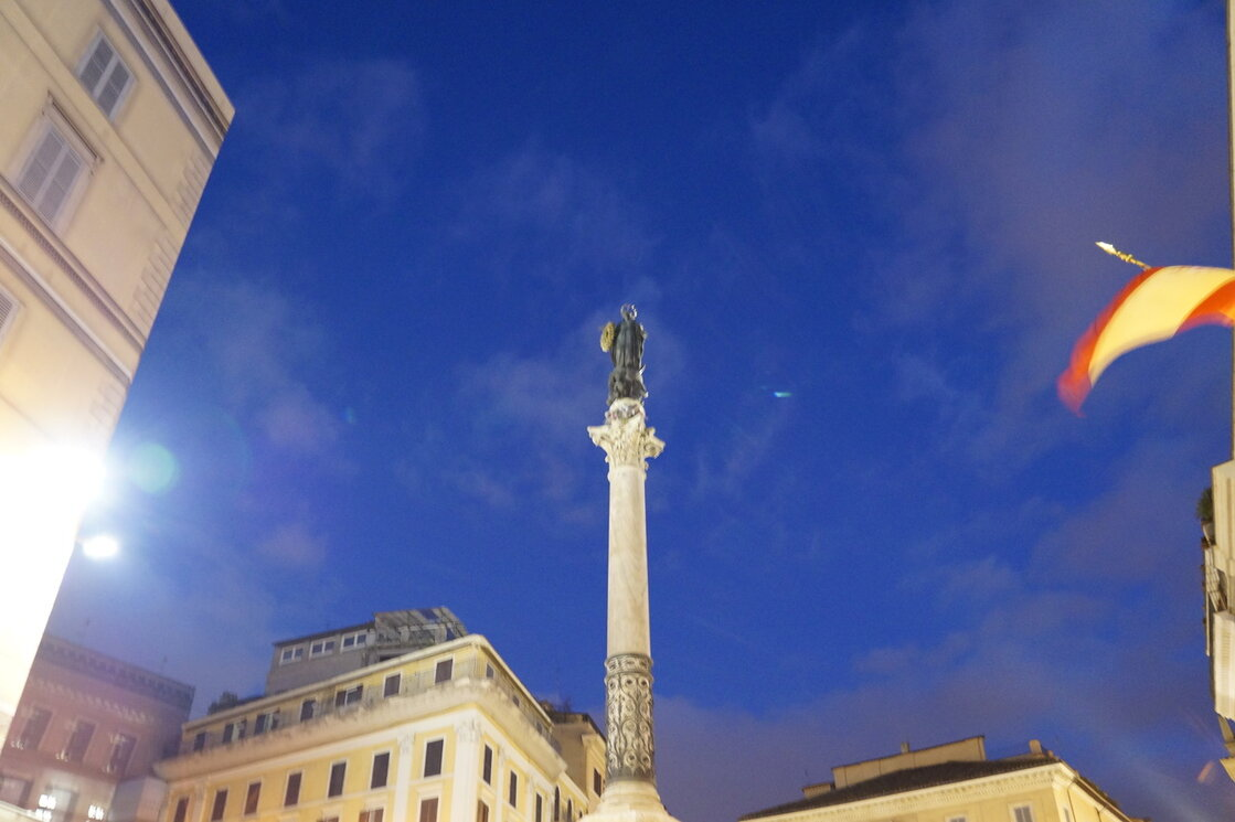На piazza Mignanelli, в нескольких шагах от лестницы Trinità dei Monti, находится колонна, посвященная догме Непорочного Зачатия, открытая 8 декабря 1857 года. Она была найдена в 1777 году в бенедиктинском монастыре Святой Марии в Кампо-Марцио. Колонна оставалась рядом с Палаццо Монтечиторио около восьмидесяти лет, до 1854 года, когда Папа Пий IX, решил воздвигнуть памятник в честь Богородицы. Работы финансировались Фердинандом II, как символический жест примирения с Церковью, и были доверены архитектору Луиджи Полетти. Колонна около 12 метров в высоту с диаметром почти 1,5 метра, опирается на мраморное основание, которое имеет четыре барельефа, посвященные Деве Марии. В углах находятся статуи пророков Моисея, Исаии, Иезекииля и Давида. Выше эмблемы евангелистов поддерживают земной шар и Луну, на которой возвышается внушительная бронзовая статуя Богородицы высотой 4 метра, работа скульптора Джузеппе Гаубичи. Подъем колонны был произведен 220 пожарными, которые дали жизнь традиции. Ка
