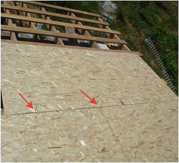 3. Плиты ОСП у нас уложены в шахматном порядке. Соответственно, вертикальные швы не совпадают.