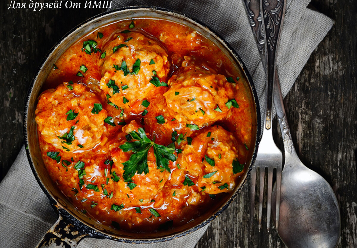 На дно сковороды, где жарились котлеты выливаем 2-5 ст.л. соуса и выкладываем друг на друга готовые котлетки. Заливаем их сверху оставшимся соусом и на медленном огне тушим под крышкой 15 минут.