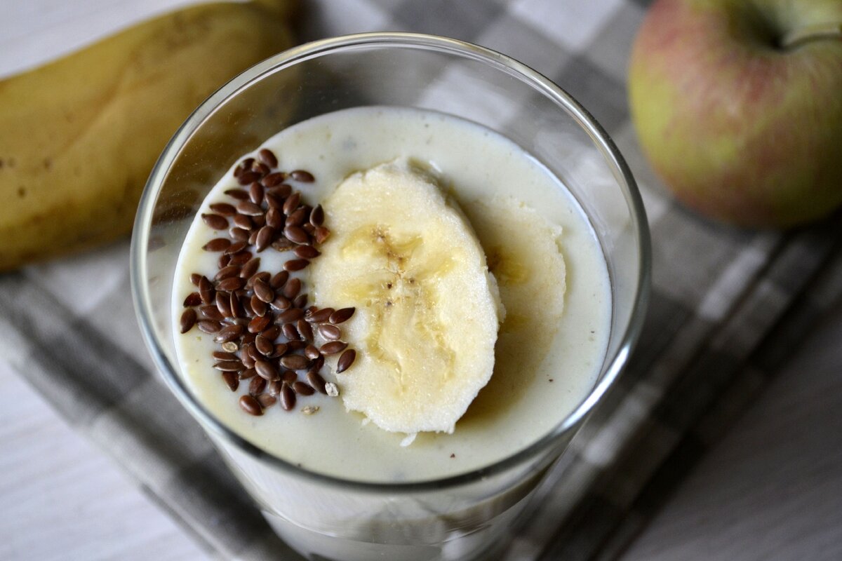 Что еще, кроме чашечки свежесваренного ароматного кофе, поможет утром проснуться, получить заряд энергии и хорошего настроения? Смузи. Этот напиток можно приготовить как из овощей, так и из фруктов и ягод с небольшим добавлением кисломолочного продукта: кефира или питьевого йогурта. В качестве подсластителя можете добавить ложечку меда, а если фрукты сладкие, то лучше не добавлять ничего. Фруктовый смузи - это витамины, клетчатка, микроэлементы - польза в каждом глотке. Ингредиенты для фруктового смузи на 2 порции половина банана крупного; половина сладкого яблока; 1 киви; 300 мл. кефира; семя льна для украшения. Как приготовить Вымойте фрукты и очистите от кожуры банан и киви. С яблока снимите кожицу и вырежьте семенную камеру. Банан и киви нарежьте небольшими кусочками, яблоки тонкими кусочками, для облегчения работы блендера. Сложите нарезанные фрукты в стакан блендера и влейте для удобства измельчения немного кефира. Погружным блендером измельчите продукты до пюре. Влейте оста
