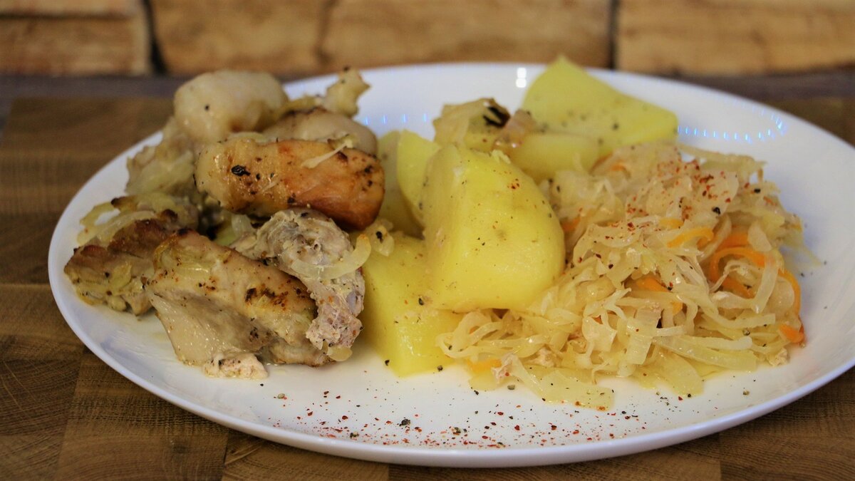 Взял картошку, мясо и капусту. Получилось очень вкусно.