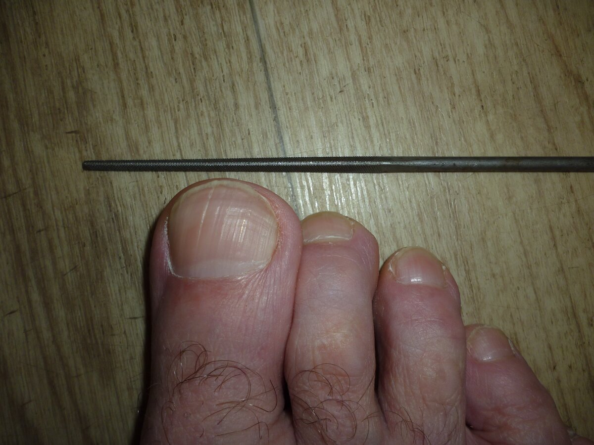 Как вылечить врезающийся ноготь на больших пальцев ног , совсем бесплатно за пять минут и на всегда. Берем трехгранный надфиль или трехгранный напильник и лечимся. Наверное у каждого , ну почти у каждого , от тесной обуви врезался ноготь на большом пальце или на обоих , довольно распространенная болячка , создающая неудобство при ходьбе. Спасение есть от наших предков , и проверенное на себе на протяжении времени. Все совсем просто: нужно взять напильник или надфиль трехгранный , и проточить ноготь по середине (на фото видно) , конечно не до мяса , и не до боли , а как бы оставить тонкую пленочку. (Кода будете точить не давайте нагреваться ногтю , тогда больно не будет.) Вот и все проблема устранена , через неделю вы и не вспомните о проблеме. Мы как бы учим ноготь расти правильно , ослабив панцирную жесткость. Всем удачи не болейте , и ставьте лайк .