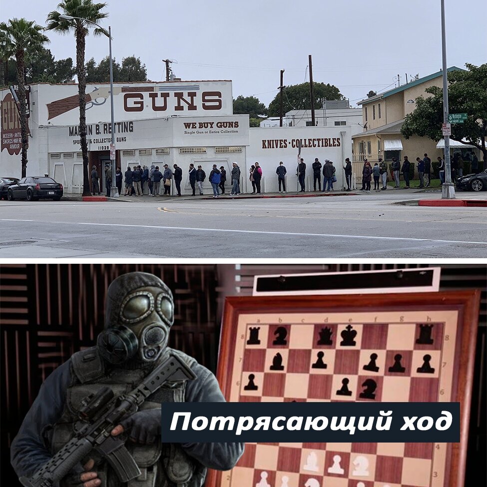 Продуманные американцы не стоят в очередях в супермаркеты за продуктами, они стоят в очередях за оружием, ибо если будет оружие — будут и продукты.