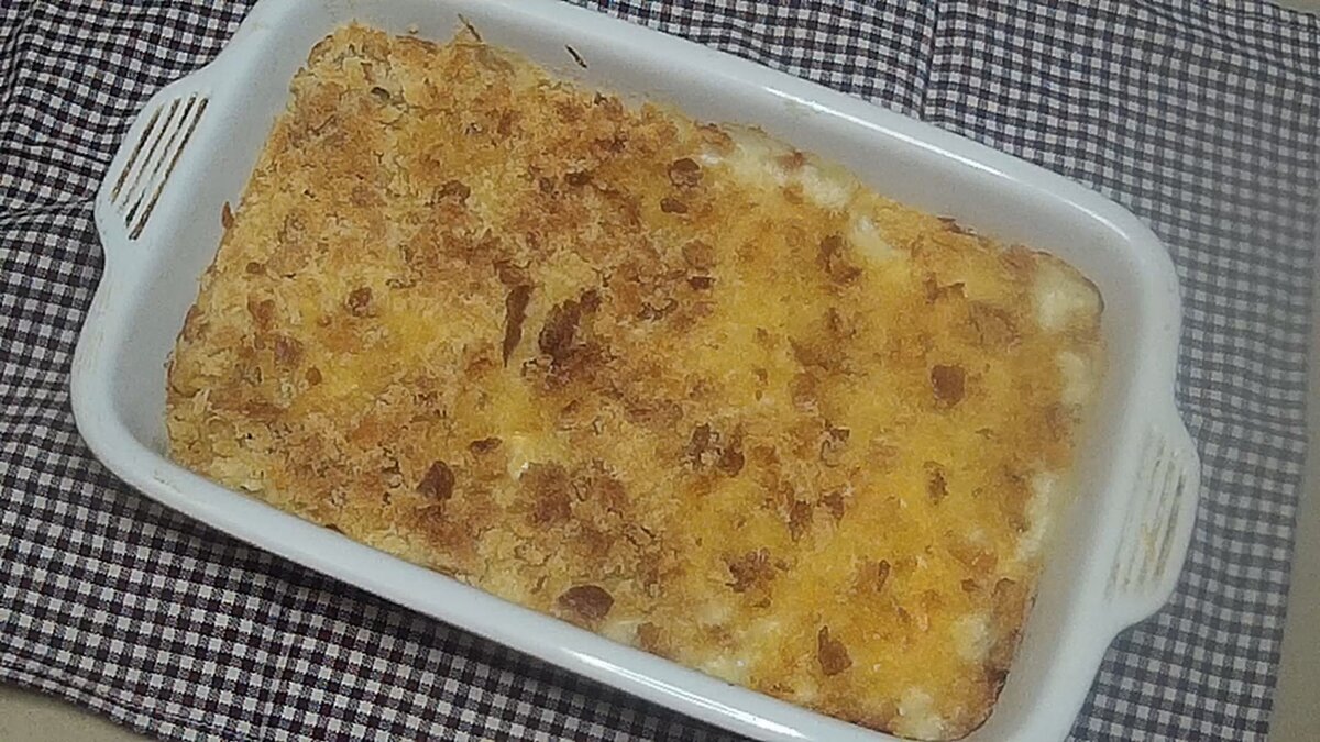 Ингредиенты Отваренное мясо курицы разрезать на небольшие кусочки. Приготовим соус. В сотейнике растопить масло. Добавить муку. Готовить 30 сек. Влить молоко и бульон. Готовить до загустения, минут 4-6. Приправить и добавить горчицу. В форму для запекания выложить курицу. Сверху вылить соус, посыпать тертым сыром. Распределить хлебные крошки поверх и выложить кусочки масла по всей запеканке. Выпекать 30 минут при 190 градусах.