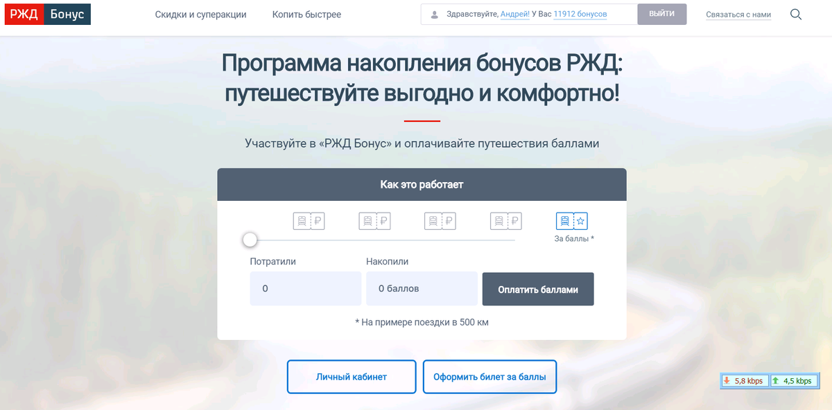 Уже не первый год у РЖД существует кэшбек сервис, который называется РЖД-Бонус. Еще года 2 назад я про него даже не слышал, наверное такие плохие маркетологи работают в РЖД, но в последний год в связи со сменой работы мне приходится раз в месяц ездить на поезде на дальние расстояния. В одной поездке я увидел в поезде рекламный букет с описанием кэшбек сервиса и решил не плохо было бы возвращать деньги за поездки,но деньги не совсем возвращаться, а копятся баллы (как в многих кэшбеках), которыми потом можно оплатить 99% стоимости билета. По приезду домой захожу на сайт и регистрируюсь.После регистрации сразу зарегистрировал 4 билета с прошлых поездок за них тоже начислили баллы. После регистрации еще узнаю, что есть очень удобное приложение для смартфонов. Можно покупать билеты в любом месте, смотреть количество свободных мест, выбирать удобное место и много еще чего полезного, а также покупать билеты за бонусы. За прошедший после регистрации год я накопил довольно много баллов. Количе