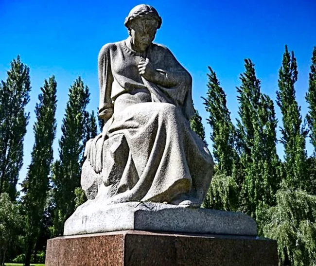 Скульптура «Скорбящая мать» — открывает комплекс, является началом «легенды» мемориала; Аллея берез — ведет посетителя к входу на братское кладбище советских воинов; Фигура солдата с девочкой на руках полна символических деталей, составляющих главный смысл всего комплекса (приложение, фото 2)