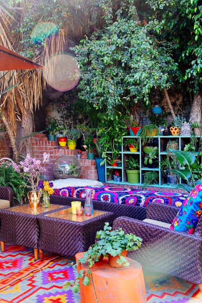 Актуальные идеи летнего оформления веранд, террас и внутренних двориков связывают со стилем бохо (сокращённо от Bohème — «богема»). Но не так важно его название, как то, что его принцип — организованный роскошный беспорядок — способствует лёгкому и непринуждённому самовыражению через яркий декор и натуральные материалы. Смешение стилей, узоров, материалов Наполните веранду любимыми вещами с историей — мебелью с чердака, стульями с блошиного рынка, покрывалами из бабушкиного сундука. И не бойтесь смешивать этнические узоры с цветочными, искусственный мех с металлом, а восточные ковры с мебелью скандинавского дизайна. Побольше мягких драпировок и буйной зелени сада вокруг. Ключевые слова — яркость и комфорт. А от ощущения простого беспорядка всю эту гремучую смесь спасёт, конечно же, ваш художественный вкус и умение почувствовать гармонию и вовремя остановиться. Мечты о путешествиях Украсьте террасу сувенирами со всех уголков света. Светильники из Марокко, турецкие ковры, китайские фон