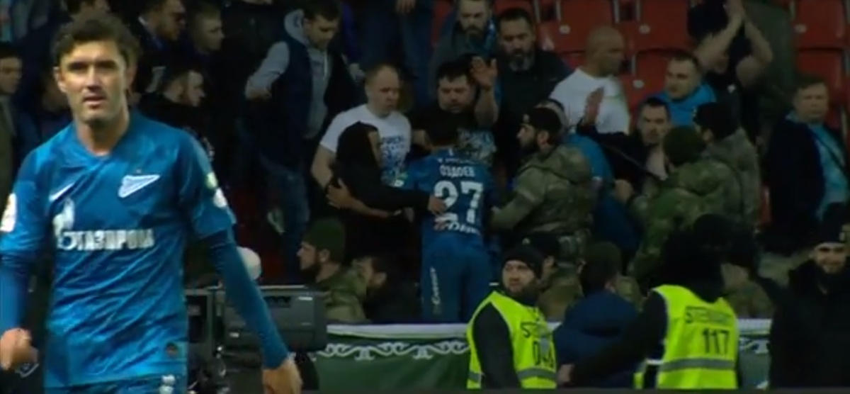 «Зенит» одержал победу над «Ахматом» в четвертьфинальном матче Олимп-Кубка России. Основное время встречи завершилось вничью 1:1. Первый мяч забил полузащитник грозненцев Одисе Роши, реализовавший пенальти. Сине-бело-голубые сравняли счет благодаря точному удару Эмилиано Ригони. В дополнительное время отличился полузащитник Юрий Жирков. Его гол стал победным. В концовке основного времени встречи игра была приостановлена на несколько минут. Фанаты «Ахмата» начали покидать трибуны и отправились в сторону фан-сектора «Зенита», где болельщики оголили торсы после гола Ригони. Драки не произошло. Зрителей успокаивали футболисты обеих команд.