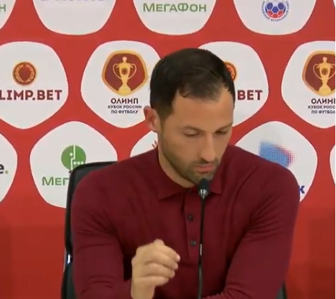 -Была непростая игра и соперник тоже непростой и в сегодняшнем матче было наверное всё. Болельщики обоих команд получили огромное удовольствие от игры. Мы забили два гола в начале матча и могли забивать ещё больше. После этого мы подарили два гола из-за того что команде не хватает опыта. О плане на игру -Контратаки часть нашего плана. В целом ЦСКА старались атаковать правым флангом. Сегодня играли две одинаковые схемы, и при таком футболе не просто найти пространство, поэтому было много борьбы и много верховых. О Бакаева и Тиле -Когда приходиться заменять такого креативного игрока как Бакаев, то игра становится другой. Что касается Тила, он хорошо играл, хорошо прессинговал, мог забить четвёртый гол. Мы можем найти замену для любой позиции, есть классные игроки. На счёт Зелимхана возможно выйдет в матче с "Краснодаром". О эпизоде на 93-ей минуте когда мяч попал в руку защитника. -Не могу сказать что там произошло. В Германии такие же правила игры. Единственное что я сделал, попросил