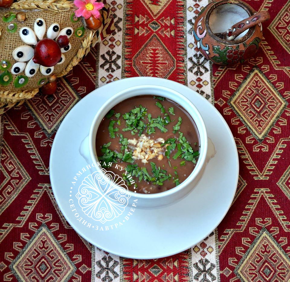 Сегодня у нас еще один суп из фасоли. Минимум продуктов, максимум вкуса и пользы. Перебрать 500 грамм фасоли, промыть, замочить на ночь. На следующий день воду слить, снова залить холодной водой и поставить на огонь. Довести до кипения, сбавить огонь и доварить до готовности на медленном огне. Откинуть на дуршлаг. Растолочь фасолины в пюре, понемногу добавляя фасолевый отвар, доводим наше пюре до консистенции жидкой кашицы. Добавить мелко нарезанный и обжаренный на растительном масле лук. Охладить небольшое количество отвара и развести им одну столовую ложку муки. Добавить к супу, постоянно помешивая. Приправить мелко нарезанными орехами, граммов 50-60, посолить, поперчить, добавить мелко нарезанную зелень кориандра(кинза), довести до кипения и проварить минут 10. Бари ахоржак. #армянскаякухня #постнаякухня