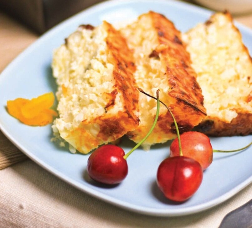 Такая запеканка — из творога с рисом — получается более сытной, чем обычные творожные запеканки, отличный вариант для плотного завтрака. Рис для запеканки нужно предварительно слегка отварить, а затем остудить — на это требуется время, но если вы спешите, можно не остужать его до совсем холодного состояния, а дать остыть до теплого или же отварить рис накануне с вечера. Ингредиенты: • Круглый рис 1,5 ст • Творог 400 гр • Яйца 2 шт • Изюм 1/2 ст • Сахар 1/4 ст • Ванильный сахар 1 ст. л • Натуральный йогурт 200 гр • Растительное масло 1 ст. л Приготовление: 1. Рис промойте, отварите в большом количестве воды в течение 10 минут. Воду слейте, рис остудите. 2. Яйца смешайте с сахаром, йогуртом и ванильным сахаром, добавьте творог, хорошо перемешайте. 3. Вмешайте в творожно-яичную массу рис и изюм. 4. Форму смажьте маслом, выложите в нее творожную массу. Запекайте при 180 ˚С 40–50 минут (время запекания будет зависеть от толщины слоя творожной массы) до образования румяной ко