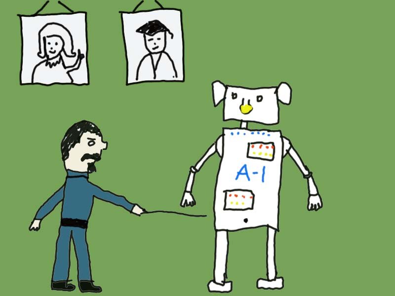 На дворе приблизительно 2049 год. Место действия - приблизительно самая счастливая страна в мире. - Коллеги, - сказал директор школы Илья Лукич и торжественно улыбнулся. - Наконец в и нашу глушь поступил первый учитель-робот. - Не прошло и десяти лет, - вздохнул учитель информатики. - Не важно. Данный экспонат отработал почти два десятилетия в одной из городских школ. И нашей деревенской школе имени нашего знаменитого земляка выпала честь теперь пользоваться этим роботом. Модель Аполлон-1. - А в Москве уже используют модель Аполлон-7, - снова вздохнул учитель информатики. - Ну и пусть. А мы будем начинать с этого. Заменим, так сказать, нашего деревянного Митю. - А я чего, зря его делал? - спросил трудовик Николай Степаныч. - Ничего не зря. Большое вам спасибо за деревянного Митю. Мы благодаря ему десять лет отчеты по роботизации образования писали. - Ну, давайте уже, поднимайте занавес, - сказала завуч Гертруда Ивановна. - Очень хочется увидеть настоящего живого робота. - Судя по с