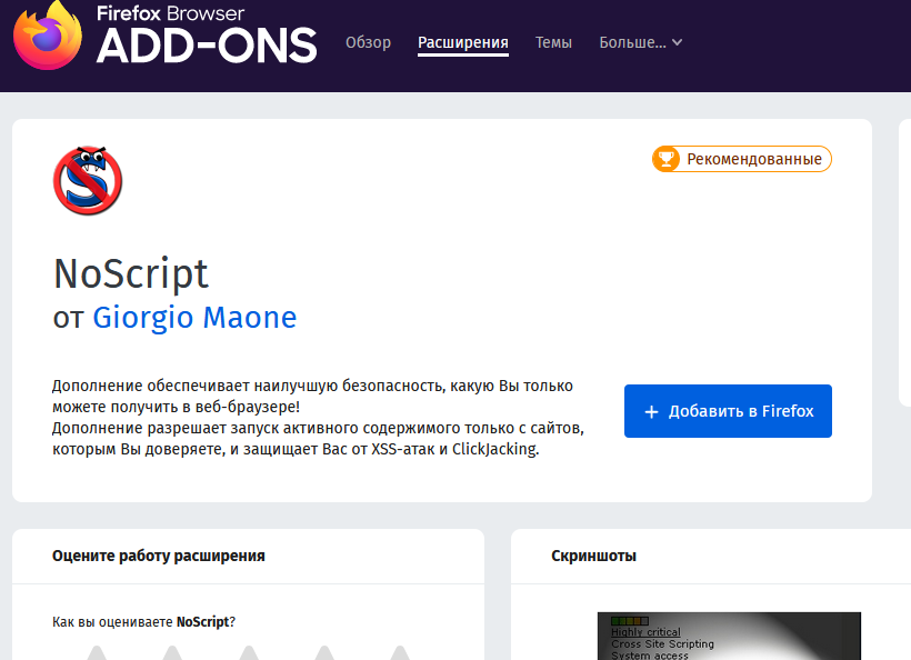 В его составе, по умолчанию, присутствует дополнение, которое призвано блокировать все скрипты на любом сайте. Именно на него, стоит обратить внимание сразу после установки.