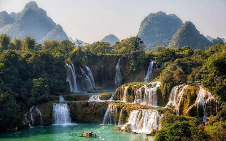 Китайское чудо природы, которое обязательно нужно увидеть своими глазами. Водопад Дэтянь — захватывающее чудо природы в Азии. Близнецы-водопады на реке Квай Сон почти идеально расположены на китайско-вьетнамской границе. Половина водопадов находится в карстовых горах округа Дасинь в Гуанси (Китай), а другая половина — в районе Трунг Кхань, провинция Цао Банг (Вьетнам). Водопад Дэтянь находится примерно в 27 километрах к северу от Ханоя. Эти водопады в настоящее время являются 4-ми по величине вдоль национальной границы, после водопада Виктория, водопадов Игуасу и Ниагарского водопада. Вьетнамцы считают, что два водопада являются двумя частями одного водопада с единственным именем Банзёк. На самом деле две части делятся на главный водопад и подчиненный водопад. Китайские источники чаще всего называют это место Дэтянем. Во время летних дождей два водопада могут объединиться. Водопад падает примерно с высоты в 30 метров и разделяется на три потока многочисленными камнями и деревьями. В