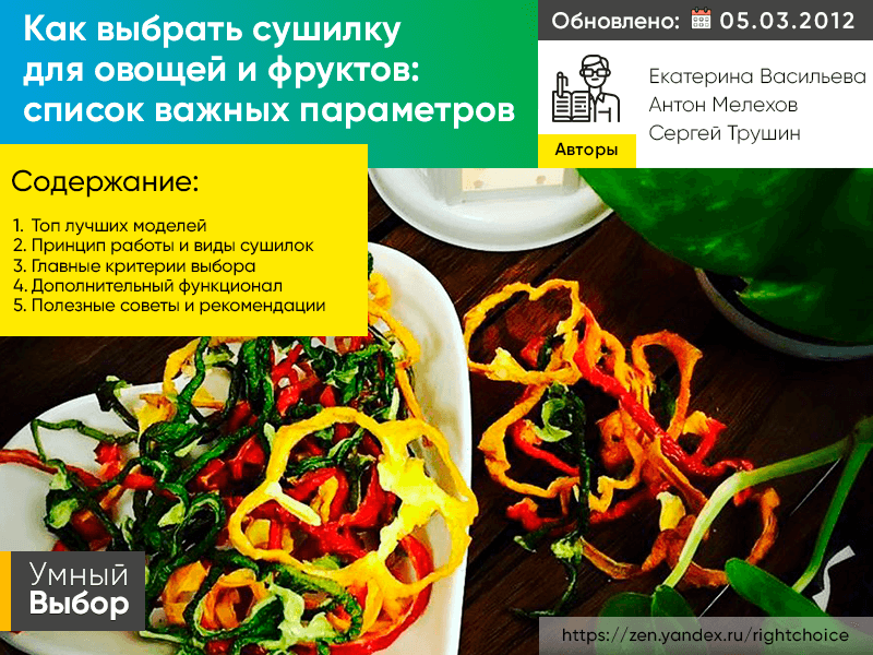 Если вы раздумываете, как правильно выбрать электросушилку для овощей и фруктов, сделайте акцент на следующих параметрах: