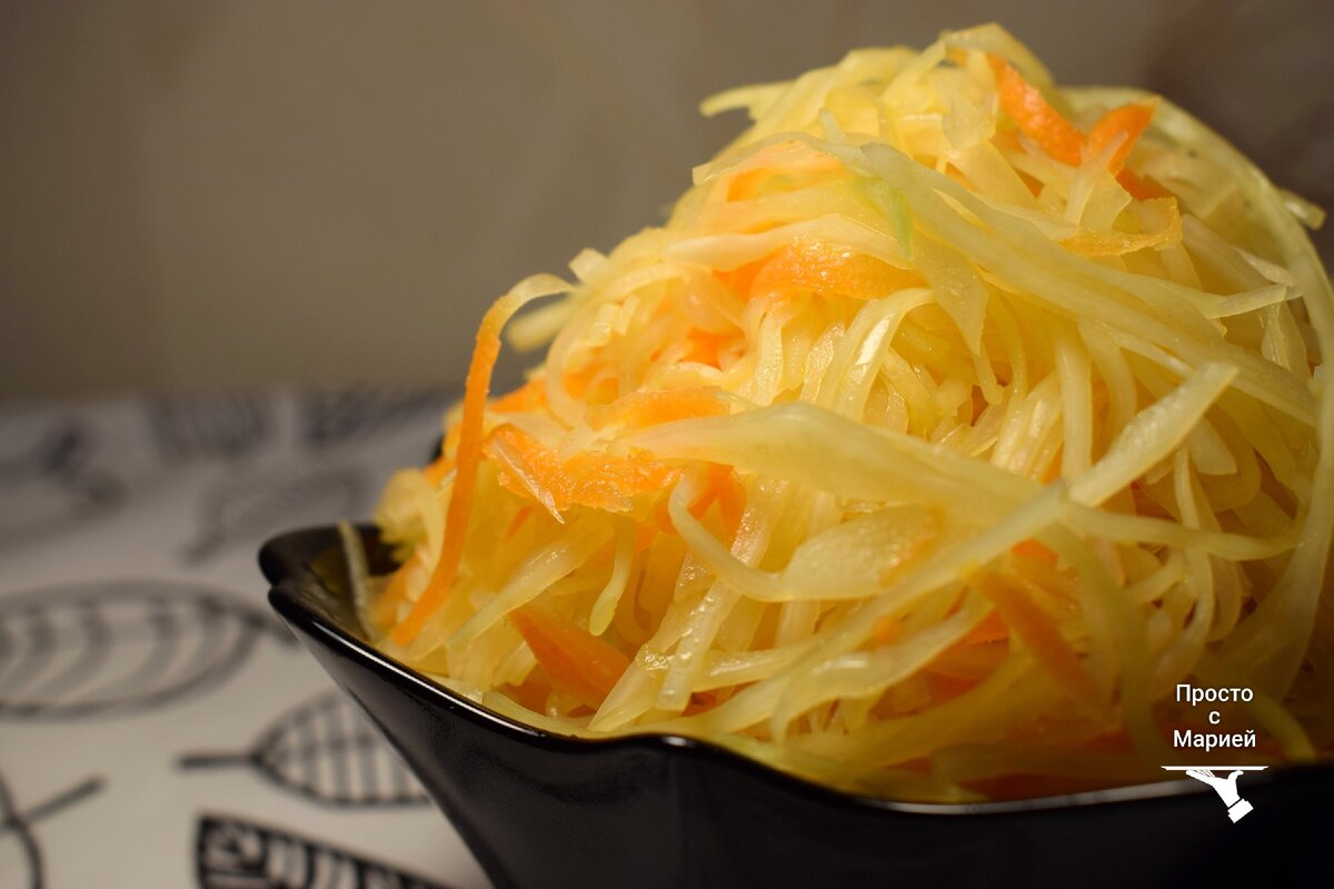 Сегодня я хочу предложить вашему вниманию интересный способ приготовления капустного салата, который недавно нашла на просторах интернета. Для меня он оказался очень необычным потому, что в процессе приготовления капусту нужно... прогревать на плите!