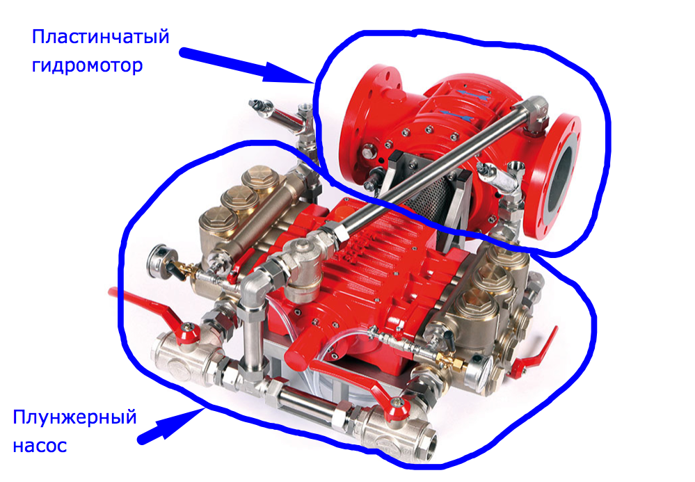 От гидромотора идет вал к плунжерному насосу.