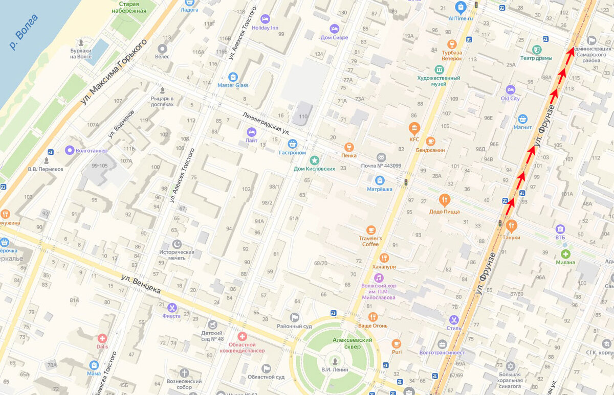 В прошлый раз мы смотрели по сторонам на перекрестке улиц Фрунзе и Ленинградской, а теперь двинемся вперед в сторону Некрасовской.