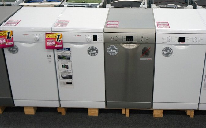Узкие посудомойки – это компромисс между большим объемом загрузки и компактностью. В них вмещается до 13 комплектов, а габариты позволяют поместить их даже в небольшое кухонное пространство.