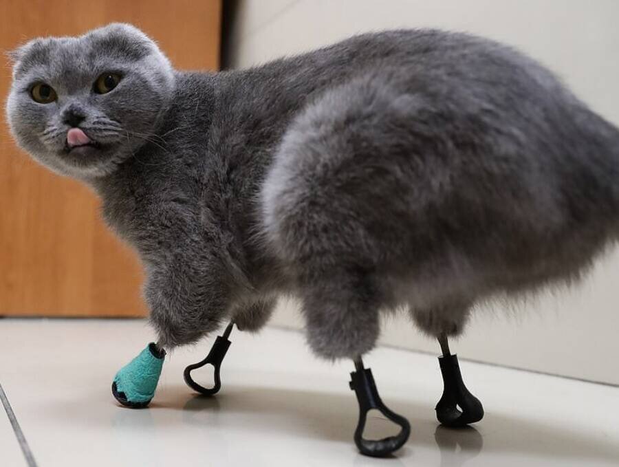 Встречайте Димку, бионического кота, чьи отмороженные лапы были заменены титановыми