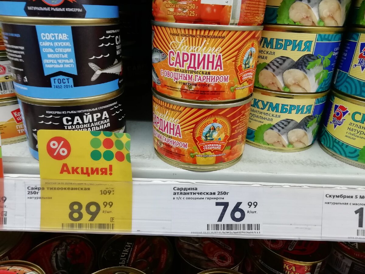 Покупку я совершила в магазине "Пятёрочка", а консервы обошлись мне в неполные 77 рублей.