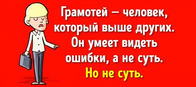 Другая крайность: люди, которые самоутверждаются за счет своего грамматического превосходства. Обычно игнорируя смысл написанного, эти «языковеды» превращаются в визжащую рептилию, наткнувшись на «тся» без мягкого знака.