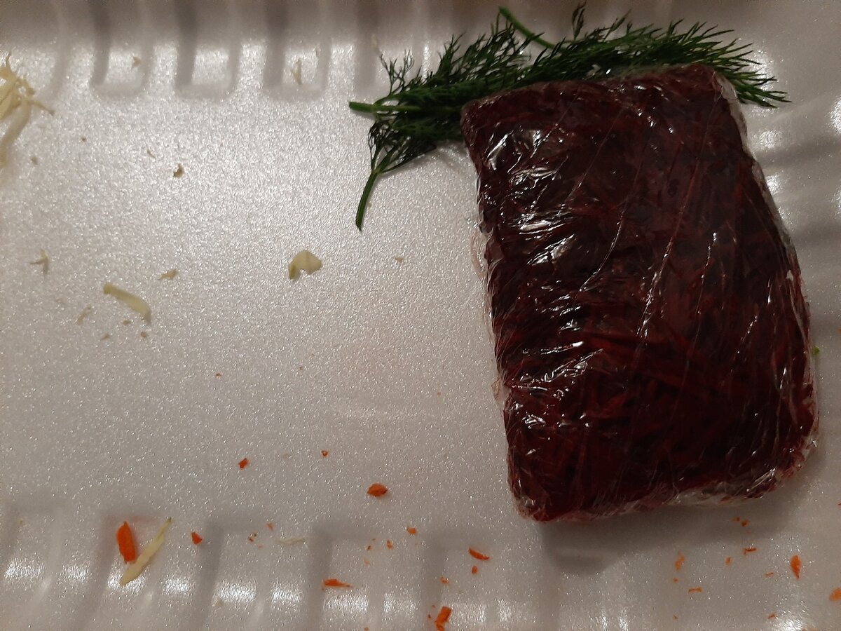 Не сразу решилась об этом писать, поэтому сфотографировала только то, что бросила в суп позже остального. Что-то у меня от недоедания уже немного мысли путаются. Собиралась уже суп выключать 5 минут назад, хотя свёклу забросила минуты за 3 до этого, выходит, что она ещё сырая))) Всё-таки людям надо хорошо кушать, все эти диеты - от ерунды. Я не на диете, если что. Вот звезда вечера, укроп, поближе, поджух, конечно, но и лежит уже больше суток: Кстати, в нашей "Ленте" вообще нет свежего укропа и петрушки, вот только в таком наборе встретила. А петрушку высыпала сухую. Короче, опять пришло безденежье в нашу семью. После вкусных покупок наступила полоса экономии. Дома - шаром покати. Нет даже картошки! Кстати, в наборе её тоже не было, ведь она темнеет быстро, пришлось купить 3 штучки "эконом". Но 1 выбросила, так как она внутри, сколько ни чистила, везде с какой-то бякой. У меня даже соль заканчивается и сахар. Какао уже закончилось, а так сладенького хочется. Хорошо, что в запасник