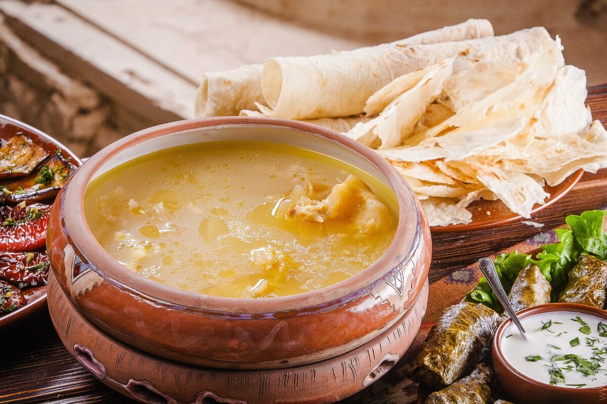 Топ блюд армянской кухни Армянская еда отличается от любой другой пищи в мире. По какой причине? Причин так много, что вы не можете найти и отметить самую важную из них. Люди в стране не забывают свои традиции и передают то, что знают своим детям. Таким образом армянская кухня сохраняет душу нации, и все это передается из поколения в поколение. Блюда, проверенные временем, являются самыми любимыми в стране. Армянский хаш Одним из самых популярных национальных блюд армянской кухни является хаш. Это особый суп или похлебка из говяжьих ног, заправленная чесноком. Перед тем, как блюдо подают, его заправляют уксусом и некоторыми приправами. Процесс кипения очень долгий. Дом, где готовят хаш, можно почуять издалека — из его окон доносится аромат хаша. Его нельзя спутать ни с чем другим. Отвар получается очень насыщенным и калорийным. Армяне едят его на завтрак или даже до завтрака. И есть обычай сопровождать хаш водкой. Немного странная традиция, но древние говорили, что это полезно.