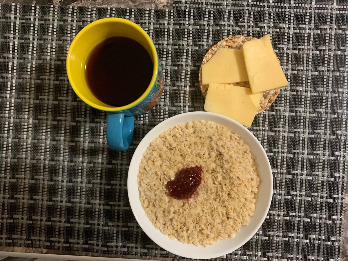 День начался в 5:30, но нужно было поработать чуть-чуть из за того что рано лег вчера. Потом покрутил педали 20 минут, выспался и сразу силы появились) Завтрак 7:30: Сегодня с утра захотелось добавил сладкое, буквально чайную ложку джема. Мелочь, а приятно. Геркулес (82г) 8г/5г/59г Чай - 0.1г/0.1г/0.1г Бородинский хлебец (10г) и сыр(30г) - 9г/9г/10г Джем - 0г/0г/4г Общее БЖУ: 17г/14г/73г Собрал еду на день: Обед 14:00: Гречка (120г) - 16г/4г/78г Грудки куриные жаренные (150г) - 44г/10г/1г Общее БЖУ: 60г/14г/79г Ужин 17:00: Гречка (30г) - 4г/1г/20г Помидоры черри (150г) - 1г/0.5г/4г 2 Яйца (100г) 12г/12г/1г Общее БЖУ: 17г/14г/25г Добил свою цель в 300 ккал, когда приехал домой. Второй ужин 20:00: Греческий йогурт 4% (140г) - 5г/9г/4г По приезду домой добил свою цель в 300 ккал На ночь 22:00 : Протеиновый коктейль ванильный Matrix 5.0 (30г) - 23г/1.5г/2г Пора спать , завтра опять подъем в 5:30. Тренировка спина + бицепс. Дневное БЖУ получилось : 112г/52.5г/183г - сегодня не добра
