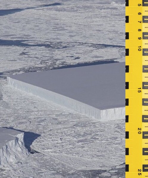 Вот еще, что они интересного обнаружили с этими прямоугольными айсбергами. В отличии от обыкновенных айсбергов, у которых подводная часть является громадной и бесформенной глыбою льда (отчего айсберги могут переворачиваться), подводная поверхность прямоугольных айсбергов такая же идеально ровная, как и ее поверхность.