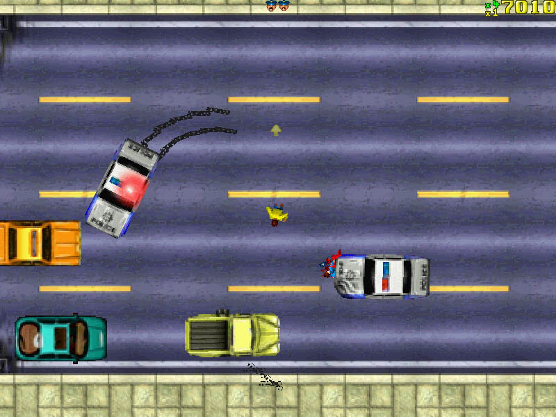 1) GTA 1 - первая часть игры, увидевшая свет ещё в 1997 году, ставшая одним из родоначальников современных экшенов. Релиз произошел для двух платформ – ПК и PlayStation. Глядя на примитивную графику тяжело представить, что именно из этой игры выросла целая серия, по праву ставшая одной из наиболее популярных и значимых. Главной целью является сеяние паники, хаоса, совершение преступлений. Главный герой может творить всё, что захочет – драться прохожими, угонять машины, а если удастся добыть оружие – расстреливать полицейских. Чтобы успешно завершить уровень, он должен набрать определенное количество очков.