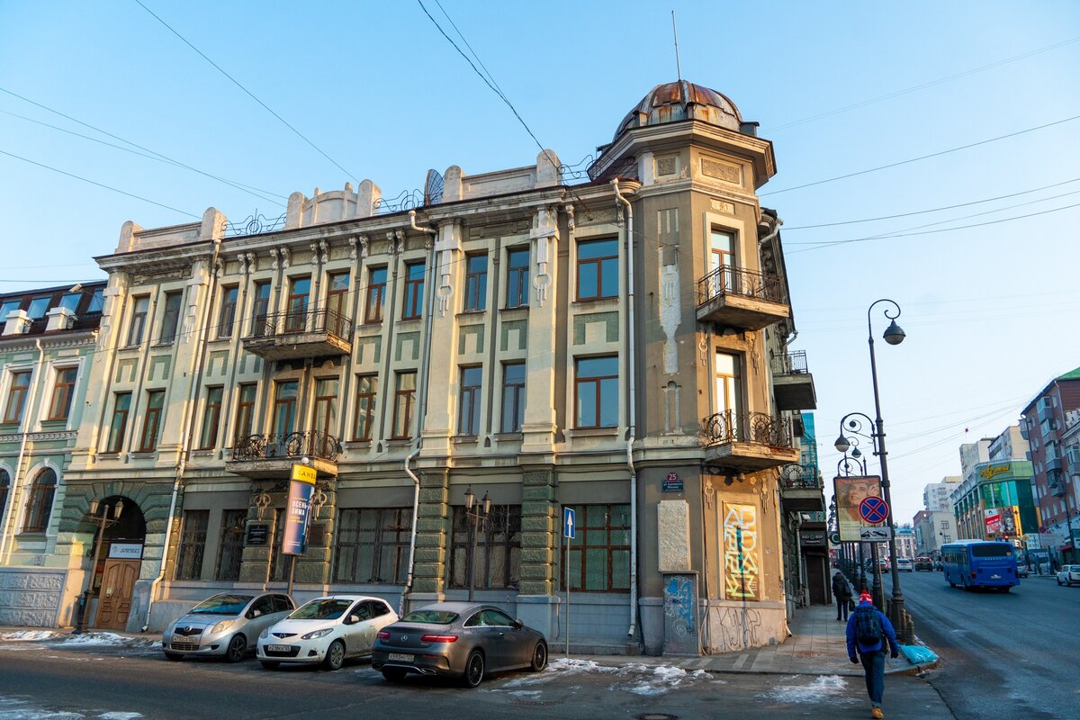 28 декабря 2016 года департаментом культуры Приморского края было утверждено охранное обязательство на объект культурного наследия регионального значения доходного дома Демби А.Г. В настоящее время здание между собой делят: галерея современного искусства Артэтаж, отдел ЗАГС Фрунзенского района, отдел соцзащиты при правительстве Приморского края, а третий этаж вообще в руках у частных лиц (со слов Александра Городнего - создателя Артэтажа, помещения были распроданы еще при Николаеве). "Дом Демби" имеет богатую историю. Построенный по проекту архитектора В. Гольденштедта (по другим данным - Г. Юнгхенделя) в 1908 году, изначально вмещал в себе торговые магазины "Грушко и Чернега", "Товарищество Пташникова" и книжный магазин Барашкова. С 1912 по 1917 год здесь размещалось вице-консульство Великобритании и отель "Немецкий", который с началом первой мировой войны в 1914 году был переименован в "Националь". А с 1918 по 1922 отель назывался - "Тёсен гинко". В конце 1922 году в этом здании разм