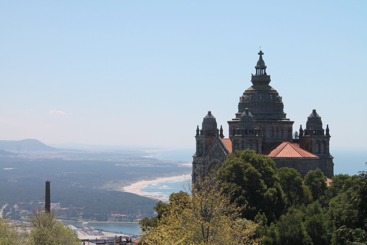 Город Viana do Castelo (Виана ду Каштелу)- самая окраина Португалии. Находится на севере страны в 40 километрах от границы с Испанией. Главной достопримечательностью и доминантой этого городка является церковь Santuario Santa Luzia, живописно расположенная на горе, которая нависает над городом: От железнодорожного вокзала на гору Санта-Лузия (195 м.) к церкви можно подняться на таком старинноми фуникулере: После выхода из фуникулера предстает величественная церковь под названием Santuario Santa Luzia: Выглядит весьма внушительно: Церковь представляет собой смешение неоготики и неороманского стилей архитектуры. Несмотря на свой старинный вид, церковь была построена в 1959 г. На фасаде находится копмозиция в виде розы: Вот она с другой стороны внутри церкви: Под куполом есть смотровая площадка, куда можно подняться на лифте или по ступенькам. С высоты открывается панорама на реку Лима, Атлантический океан и сам городок: Сам городок фото крупнее: Центр города Виану де Каштелло расположе