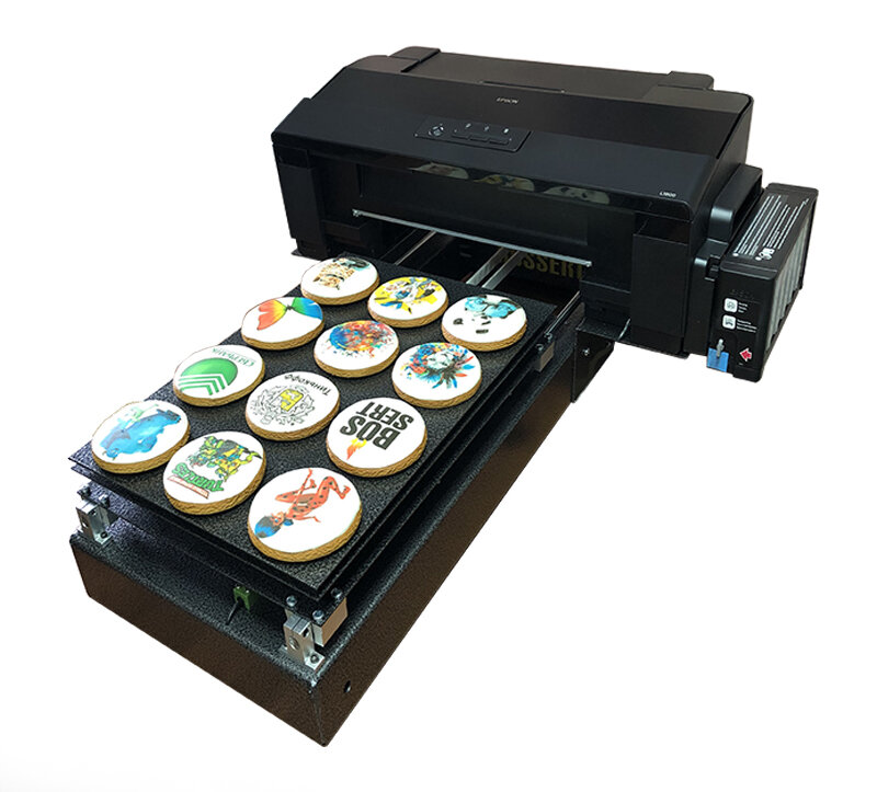 На прошлой неделе был полностью готов и протестирован новый кондитерский принтер для печати на различных пищевых заготовках формата А3+. Мы специально приобрели глазированные пряники и напечатали на них различные логотипы и изображения. Мы были очень довольны результатом, пищевые чернила не портят вкус, а изображение получилось ярким с отличной цветопередачей. Принтер уже поступил в продажу, все желающие могут успеть приобрести по сниженной цене.
