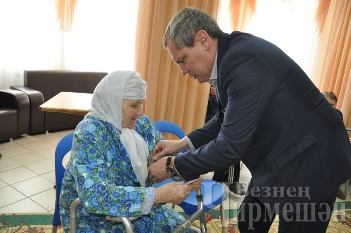 Жителей Черемшанского дома-интерната наградили медалью Руководитель районного исполнительного комитета Ильфат Шайдуллин вручил юбилейные медали “75 лет Победы в Великой Отечественной войне 1941-1945 годов” четырем труженикам тыла, проживающим в районном доме-интернате для престарелых и инвалидов. Проживающей в доме интернате самый старшей труженице тыла Анастасии Кунаковой в этом году исполняется 93 года, Райхане Хусаиновой – 91, Ракие Хисамутдиновой и Савничей Шиповаловой – по 89 лет. Всего в районе насчитывается 249 тружеников тыла, всем им будут вручены юбилейные медали. Предусмотрена и единовременная денежная выплата труженикам тыла в размере 50 тысяч рублей. Ракия эби приехала сюда из Старого Кадеева только в прошлом году. С началом Великой Отечественной войны 10 летняя девочка, как и другие ее сверстники, начала работать в колхозе. -Отец не вернулся с войны, мама осталась вдовой с пятерыми детьми, я была вторым ребенком в семье, - рассказывает Ракия эби. - Работали в поле, помн