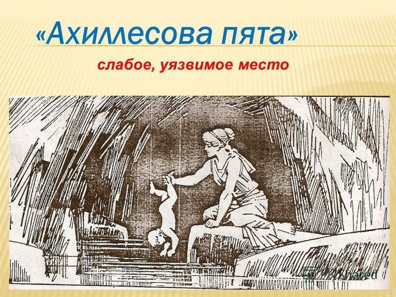Ахиллесова пята. В греческой мифологии Ахиллес (Ахилл) - один из самых сильных и храбрых героев; он воспет в <<Илиаде>> Гомера. После гомеровский миф, переданный римским писателем , сообщает, что мать Ахиллеса, морская богиня Фетида, чтобы сделать тело сына неуязвимым, окунула его в священную реку Стикс; окуная, она держала его за пятку,которой не коснулась вода, поэтому пятка осталась единственно уязвимым местом Ахиллеса, куда он и был смертельно ранен стрелой Париса. Возникшее от сюда выражение <<ахиллесова (или ахиллова) пята >> употребляется в значении: слабая сторона, уязвимое место чего - нибудь. Архимедов рычаг.Дайте мне точку опоры, и я сдвину Землю. Биографы Архимеда Сиракузского (около 287 - 212 гг.до н.э.), величайшего математика и механика Древней Греции,рассказывают, что он, установив законы рычага, произнес гордую фразу: <<Дайте мне точку опоры, и я сдвину Землю>>. От сюда возникло выражение <<архимедов рычаг>>, употребляемое в значении: двигательная сила вообще. Могущее
