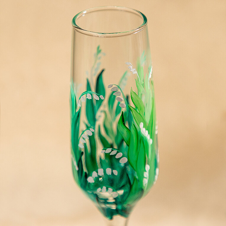 Как просто нарисовать на бокале или любой другой поверхности нежные ландыши и превратить обычный предмет в запоминающийся подарок, сделанный своими руками? Простые в исполнении стилизованные цветы выглядят очень нежно и естественно.