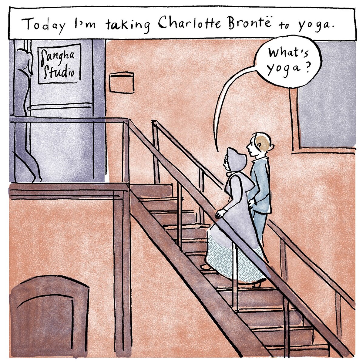 Талантливый иллюстратор с хорошим чувством юмора Глиннис Фоукс нарисовала серию иллюстраций, которой мы хотим с вами поделиться! Сегодня я иду на йогу с Шарлоттой Бронте: