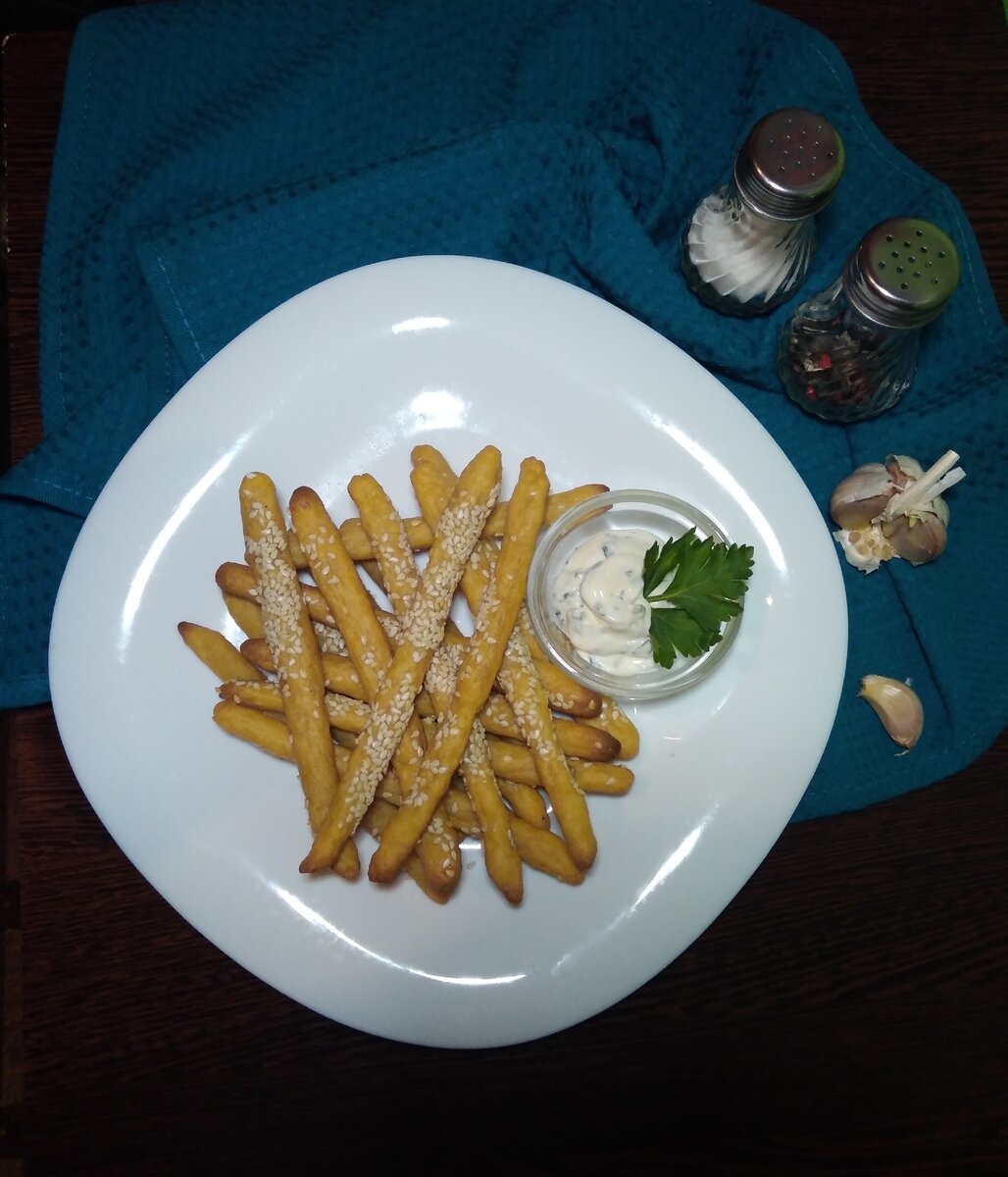 Когда я впервые приготовила эти палочки, все мои друзья были в восторге. Попробовав одну штучку, рука сразу же тянулась за следующей. Это простая, но прекрасная закуска для любой компании! Готовится она очень быстро, а съедается просто моментально. Всем вашим гостям она придется по вкусу, точно никто не останется равнодушным. 1. Натираем сыр на тёрке и смешиваем его с мукой. 2. Размягчённое сливочное масло добавляем к сыру и всё хорошо перемешиваем. 3. Добавляем сливки, соль и паприку. Очень старательно вымешиваем тесто. Оно должно получится мягким, хорошо держать форму и не липнуть к рукам. Если тесто получилось жидковатым, то просто добавляем муку. Количество соли регулируйте сами, т.к вкус изделия будет зависеть от вашего сыра. Есть сильно солёные сыры, а есть слабо солёные. Так же ориентируйтесь на свои вкусовые предпочтения. 4. Ставим разогреваться духовку на 180° . Из полученного теста делаем сырные палочки. Для этого делим тесто на небольшие кусочки, и скатываем из них шарики ра