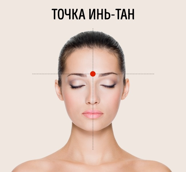 Когда у вас раскалывается голова, а нужной таблетки нет под рукой, ситуация кажется безвыходной. Но это не так. Существует научный способ избавления от головной боли, который называется акупрессура. Акупрессура — это точечный массаж, эффективность которого подтверждена множеством научных исследований. По своей сути это разновидность иглоукалывания и рефлексотерапии, только для его применения не требуются особые медицинские знания. Как массировать акупрессурные точки? Для начала примите удобное положение и расслабьтесь. Массаж точек не занимает много времени, в среднем от 30 секунд до 1 минуты. Массируйте точку легкими надавливаниями или круговыми движениями. Обычно головная боль проходит во время массажа или через 5–10 минут после окончания. Существует 6 основных точек для избавления от головной боли Точка третьего глаза, или инь-тан, находится между бровями, в том месте, где переносица переходит в лоб. Эта точка также отвечает за снятие усталости глаз. Симметричные точки,