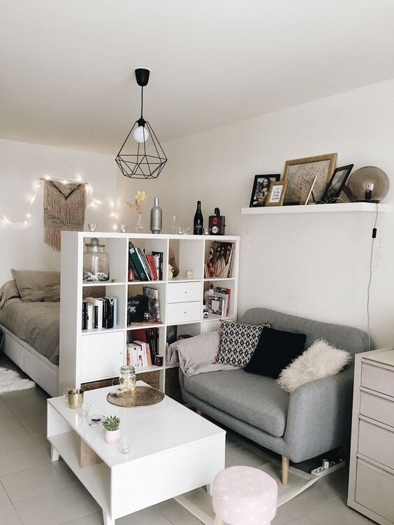 Если у вас квартира студия, то рано или поздно вы столкнетесь с желанием хоть немного выделить тематические зоны и отделить одно от другого. Давайте посмотрим, как сделать это без строительства стен. Современный интерьер не терпит нагромождения ненужных вещей и мебели. Нельзя жить в тесном пространстве, его надо трансформировать, мудро и со вкусом используя каждый квадратный метр, а стеллажи — лучшее изобретение. Использование стеллажей с книгами Наполнив их книгами, вы сможете отделить спальное место или место для ребенка от остальной части квартиры и сделать комнату более уютной. Стеллаж с книгами позволит разделить комнату на две зоны и создать в каждой из них собственный интерьер. На отдельном пространстве, которое находится ближе к окну можно сделать рабочую зону с компьютерным столом, в с другой стороны поставить мягкий уголок или кровать. Стильные стеллажи перегородки для зонирования комнаты — это не только красивый, но и функциональные предмет мебели, который позволит создать