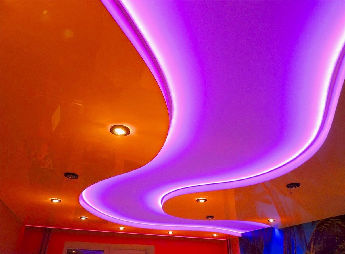 - в конструкцию натяжного потолка можно свободно встраивать не только самые разнообразные люстры и светильники, но также и системы сигнализации, вентиляции и противопожарной безопасности;
